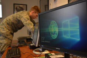 Air Force Lt. Col. Christopher Miller, 302nd Fighter Squadron commander and F-22 Raptor pilot, is presented with a plaque by representatives from Lockheed-Martin highlighting his 1,000th-hour milestone, Nov. 20, 2017.(U.S. Air Force photo by Tech Sgt. Mike Campbell/Released)