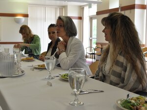 Mrs. Katherine Hostage, wife of Gen. Mike Hostage commander of Air CombatCommand, met with Active Duty and Reserve wives of F-22 pilots during a tourof Joint Base Elmendorf-Richardson, Alaska July 17. "I would like to thank you all for being here today," Hostage said. "My goalis to hear what some of