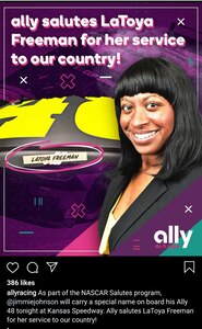JACKSONVILLE, Fla. -- When LaToya Freeman got a call July 22 saying her name was going to be painted on Jimmie Johnson’s car as part of NASCAR Salutes for the Super Start Batteries 400 race at the Kansas Speedway, she was in disbelief.Freeman, who recently enlisted in the Air Force Reserve but has