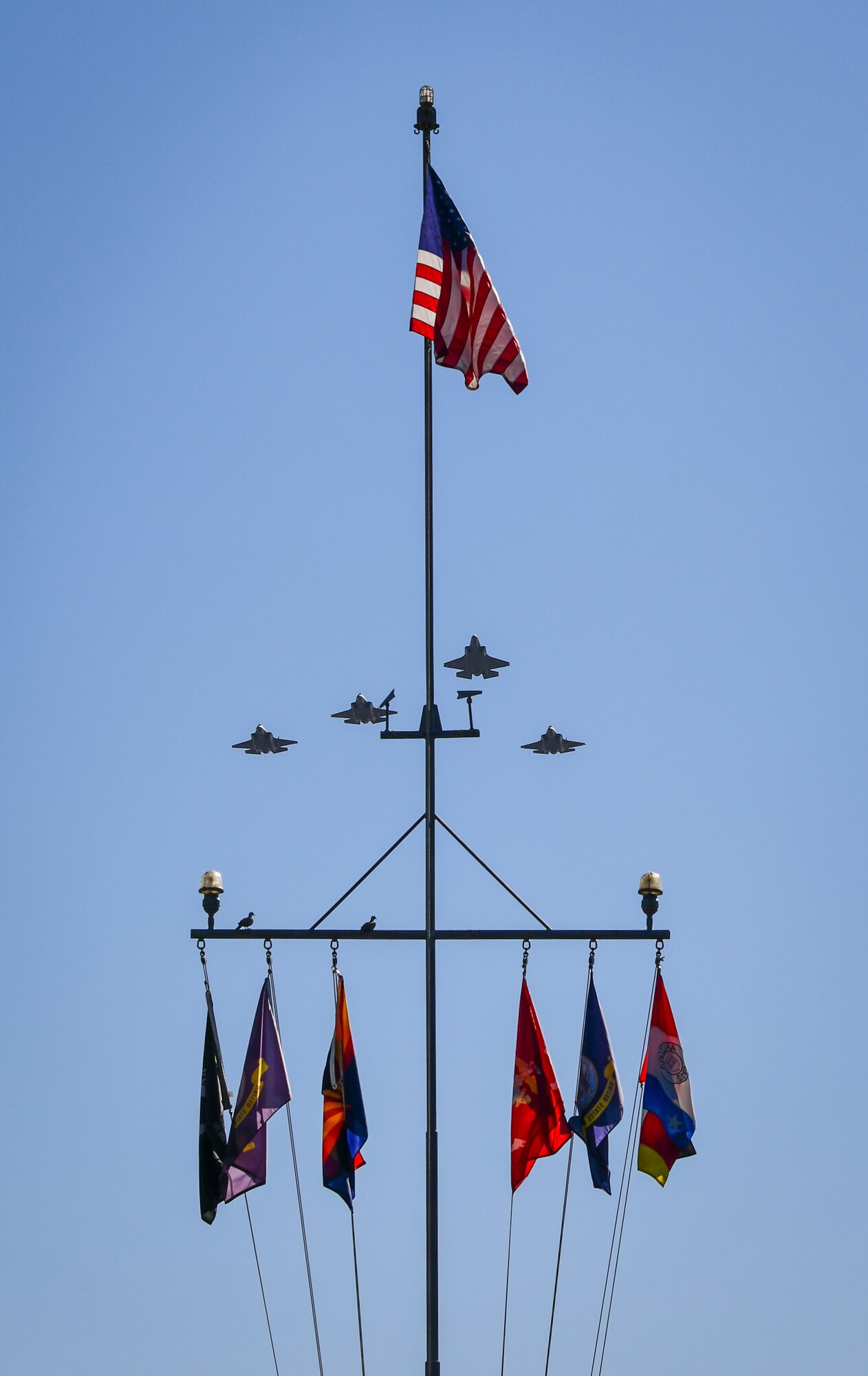 Reserve Citizen Airmen from the 944th Fighter Wing at Luke Air Force Base, Arizona, executed an F-35 Lightning II Missing Man formation flyover October 2, 2020. The mission over the Arizona State Capitol paid tribute to the late Maj. George Washington Biggs, U.S. Air Force (Ret.).